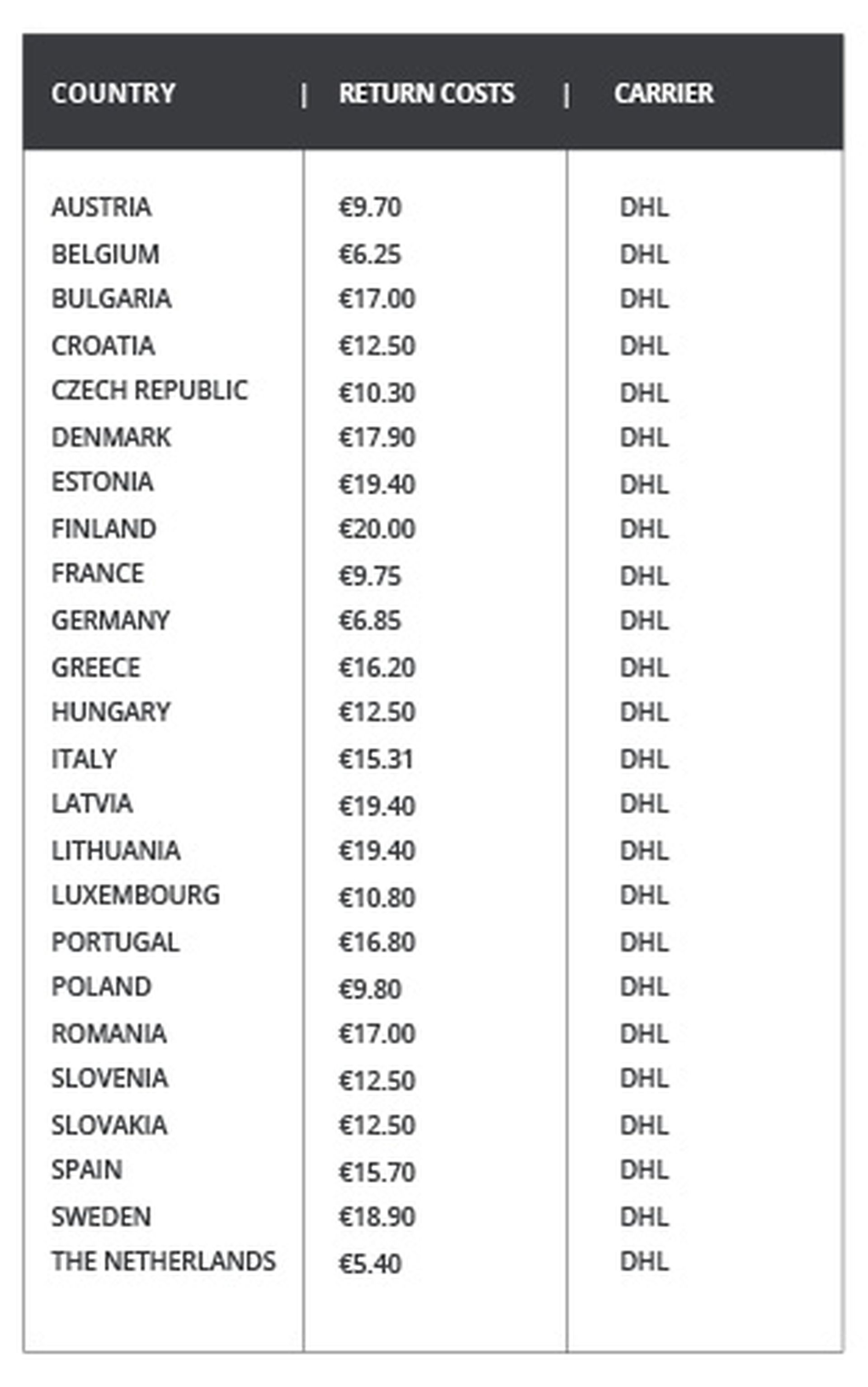 After registering the return, you can purchase and download a shipping label, via the portal. Registering returns enables faster processing in the warehouse. We cannot guarantee that returns that are not pre-notified will be processed correctly.